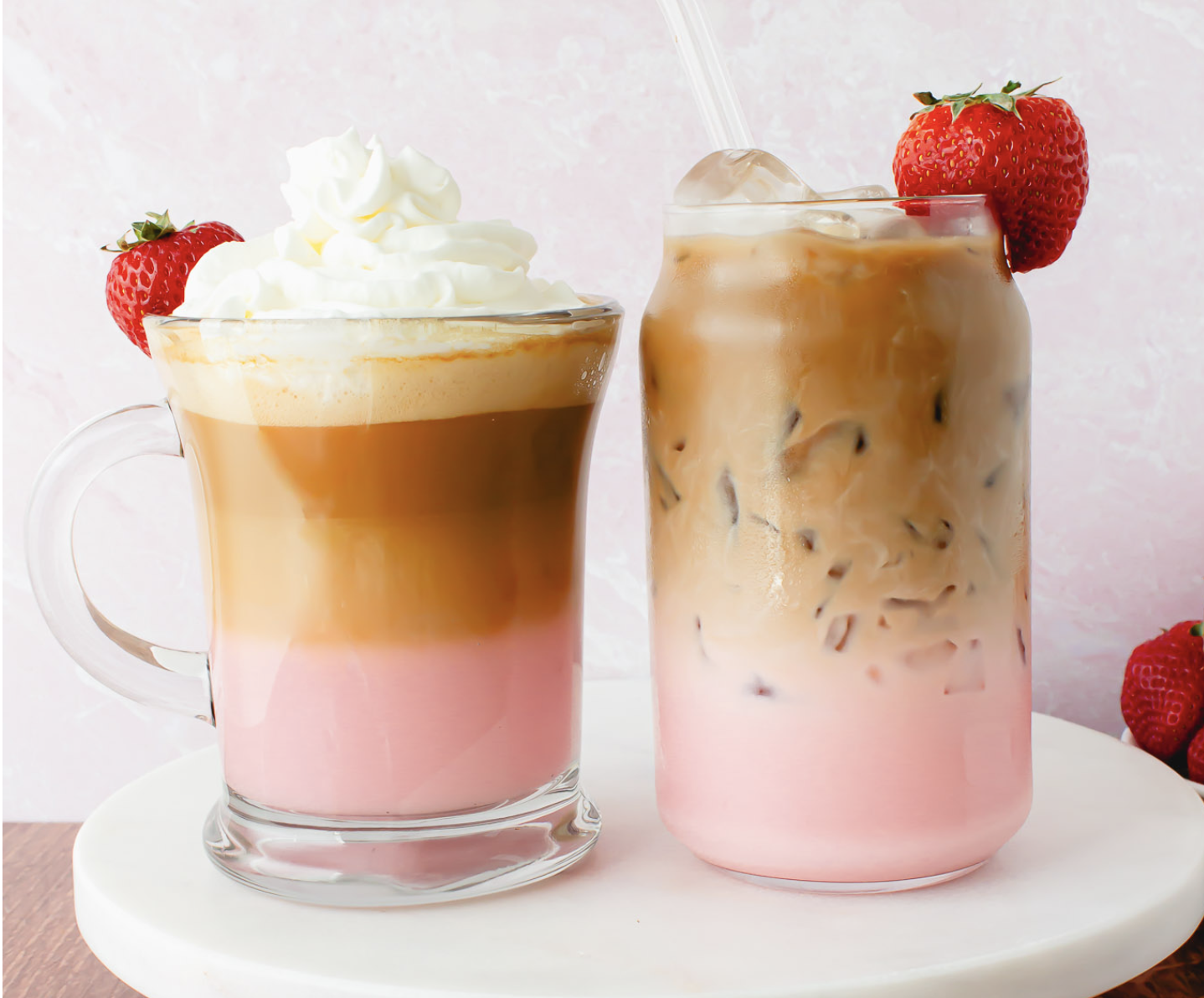 Her er en opskrift på en Lækker og Forfriskende iced Strawberry Latte